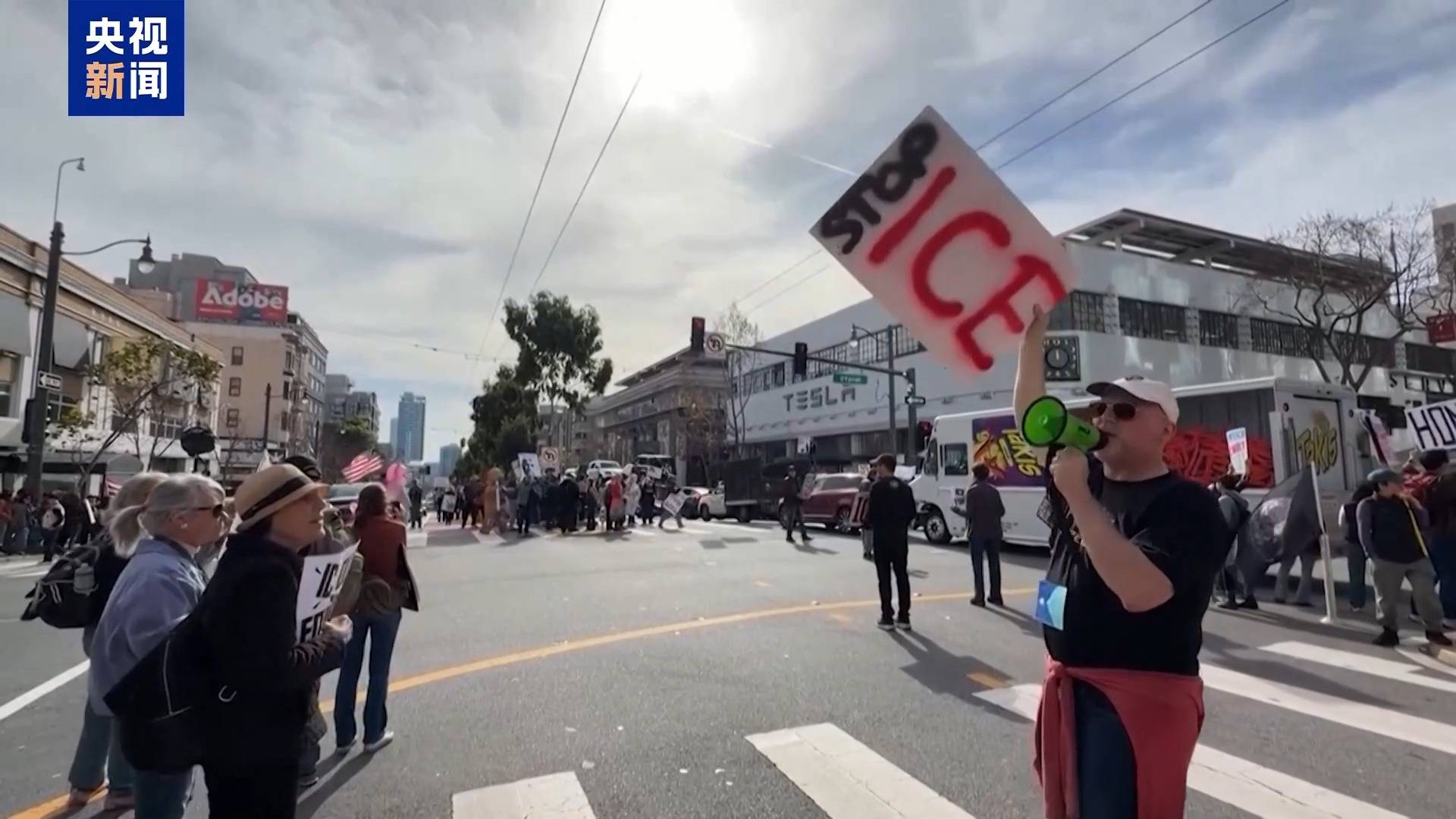 1月31日,在加利福尼亞州舊金山,反對美國聯(lián)邦執(zhí)法人員移民行動暴力執(zhí)法的抗議也在持續(xù)進(jìn)行。