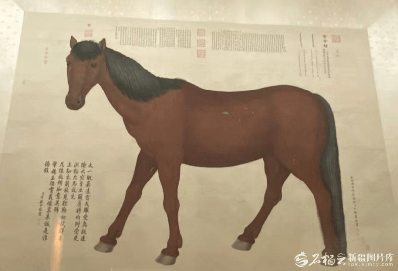 新疆博物館故宮廳展示的《寶吉騮圖》。石榴云/新疆日?qǐng)?bào)記者 趙梅攝