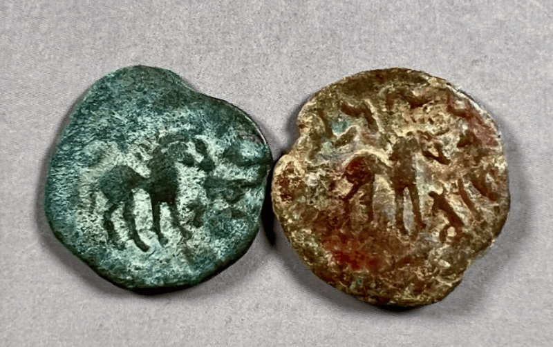 和田地區(qū)博物館館藏的“漢佉二體錢(qián)”。和田地區(qū)博物館資料圖
