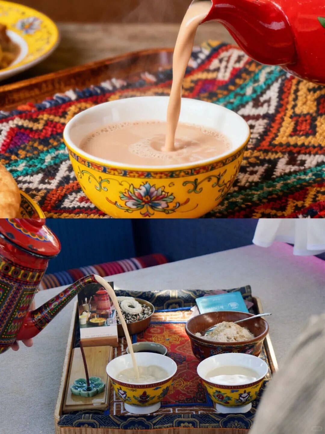 藏式甜茶醇厚絲滑、糌粑捏成了小團子,地道的藏式下午茶,讓你邊品美食邊賞風(fēng)景,別有一番風(fēng)味。
