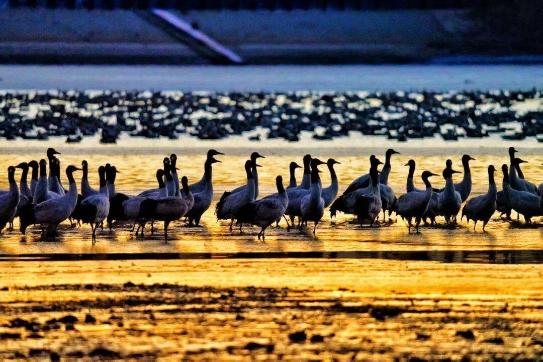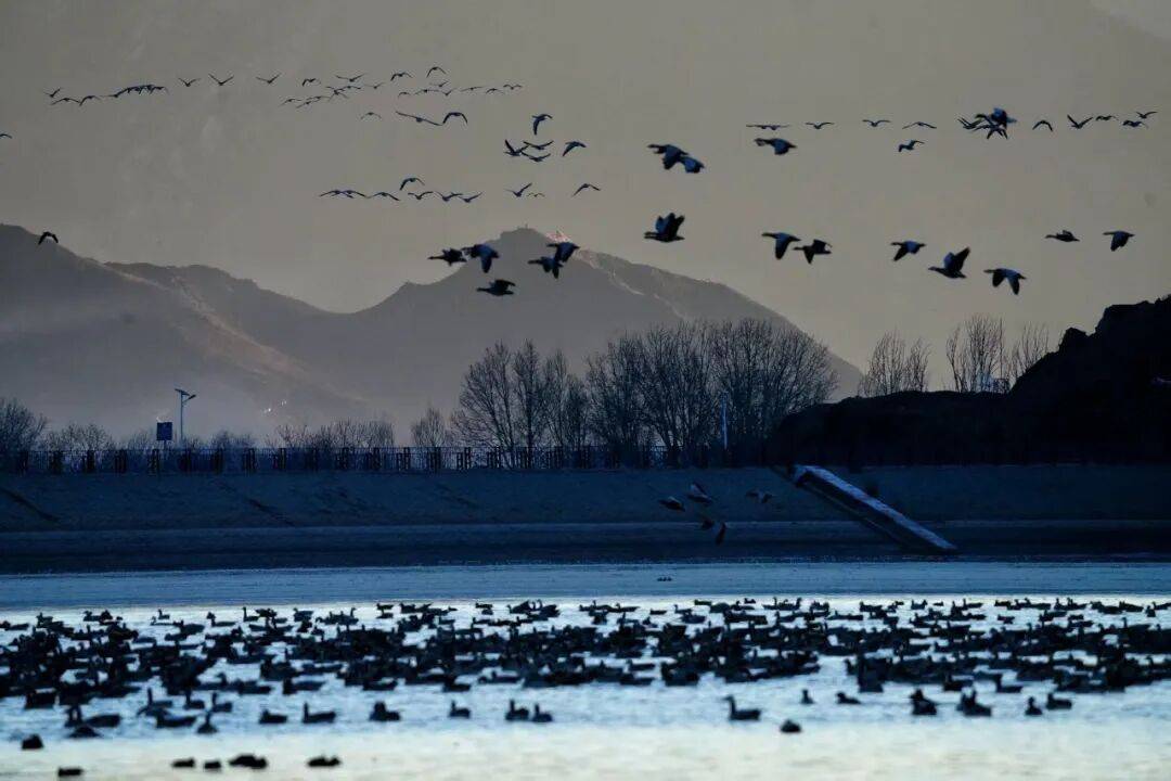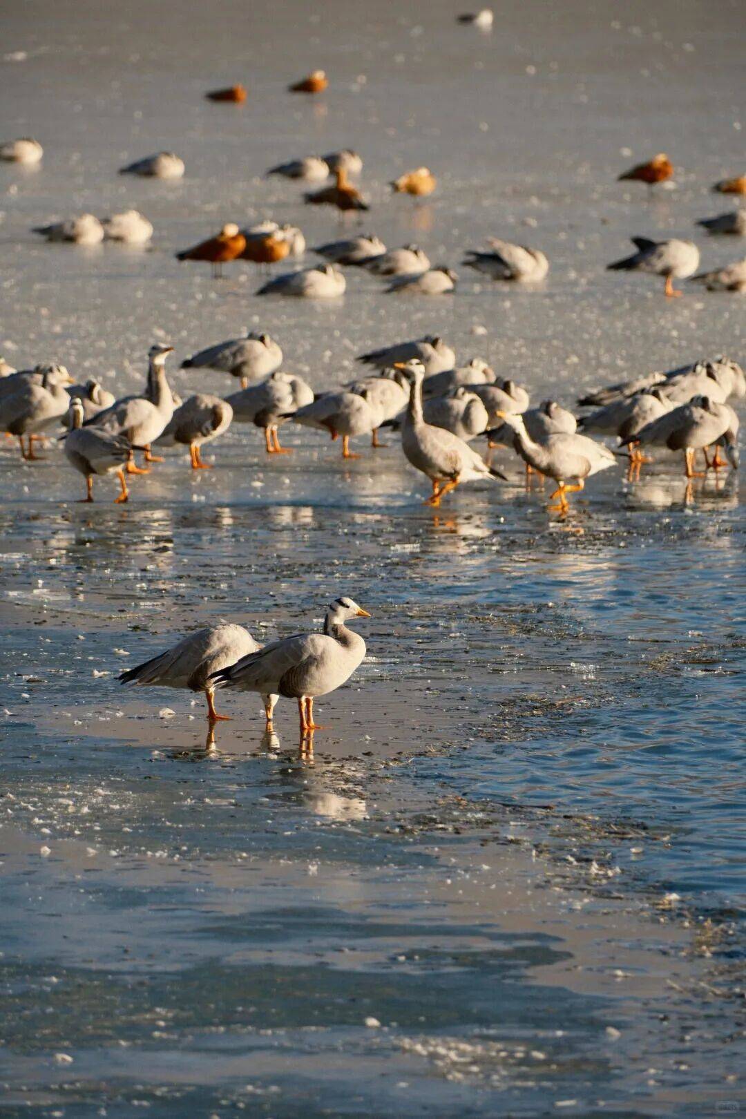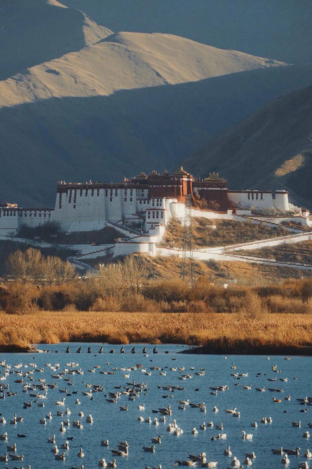 布達拉宮巍然聳立與結(jié)冰的水面構(gòu)成一幅靜謐的冬日畫卷。這里是候鳥越冬的天堂,黑頸鶴、斑頭雁等候鳥在此棲息,為濕地增添了無限生機。